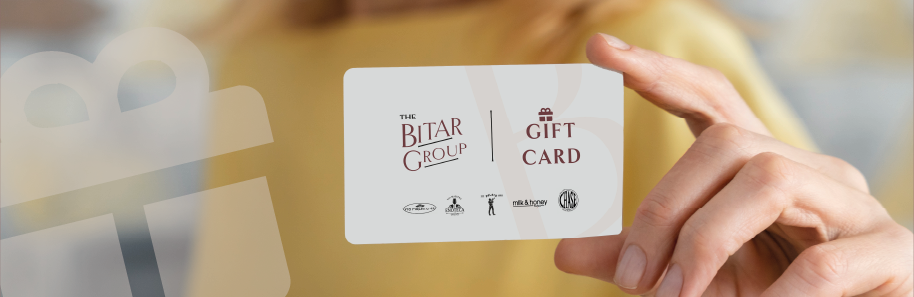 Gift cards are redeemable for food and beverage at participating Bitar Group restaurants. Present the physical card or e-gift code at payment.